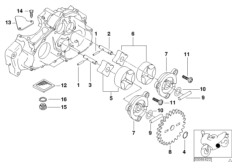 Основные разделыДвигатель → Масляный насос с сеткой и приводом